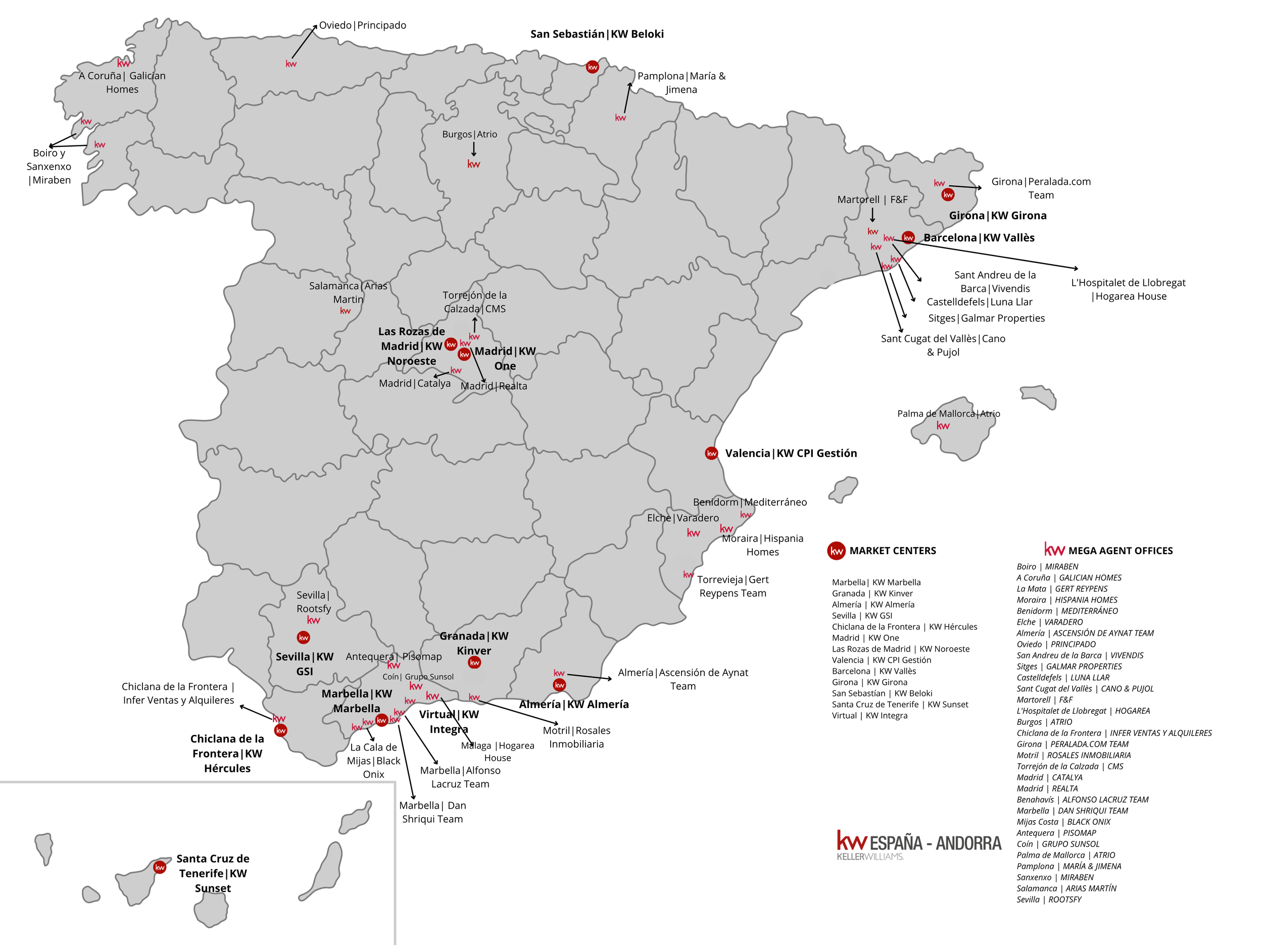 Situación de los Market Centres Keller Williams en España-Andorra. Para contactar con los Market Centers PULSA AQUÍ.
